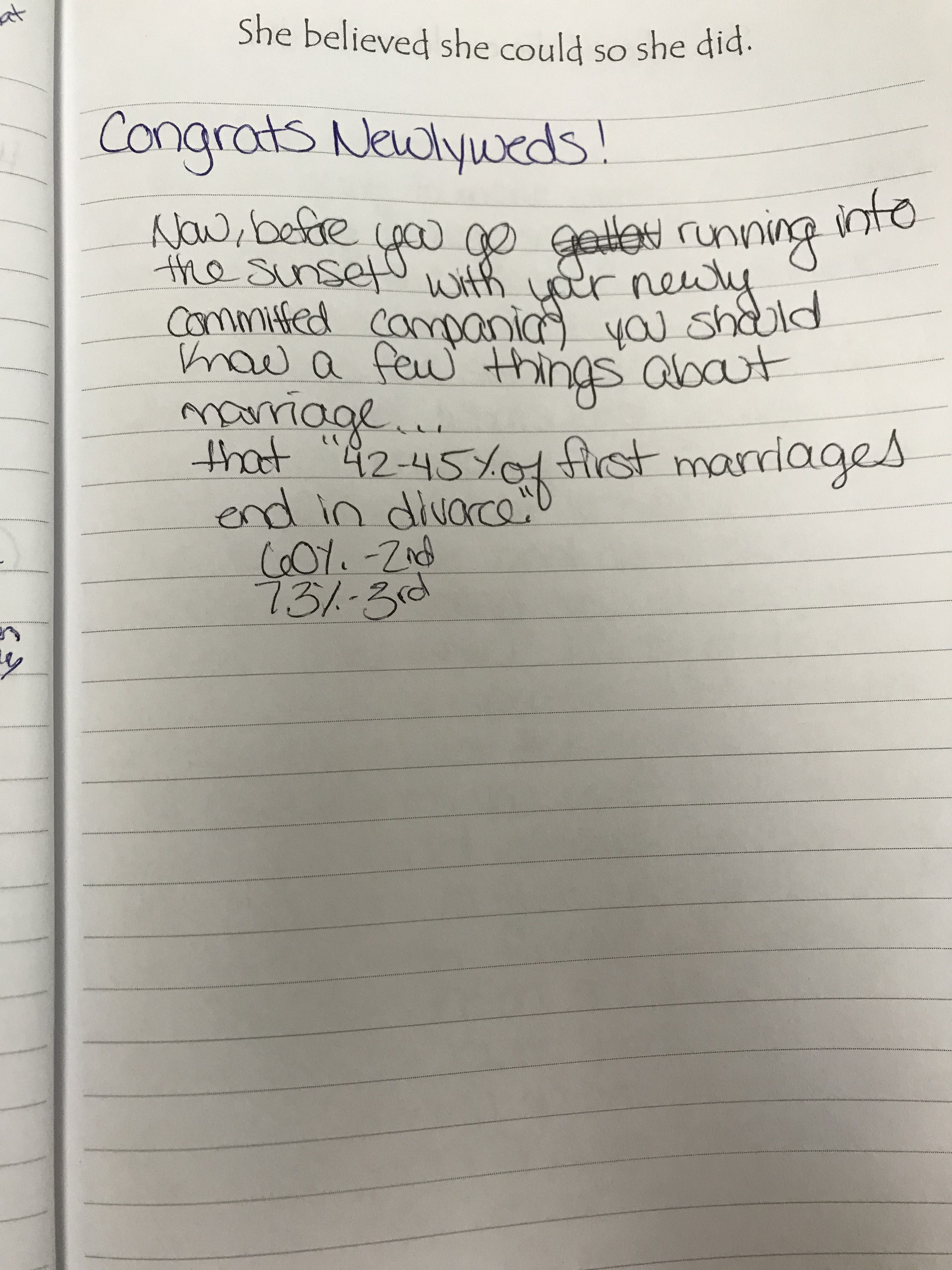 So this draft is quite a mess. I decided to start writing when an idea hit me: How to go from Newlywed to single again. I started out with a few other ideas: reasons NOT to have a baby, why you SHOULD have a baby, having a baby to solve your relationship problems… I started lists for each of these topics and hit a dead end. Even I wasn’t convinced. Then I finally got this idea that I have several ideas for writing.